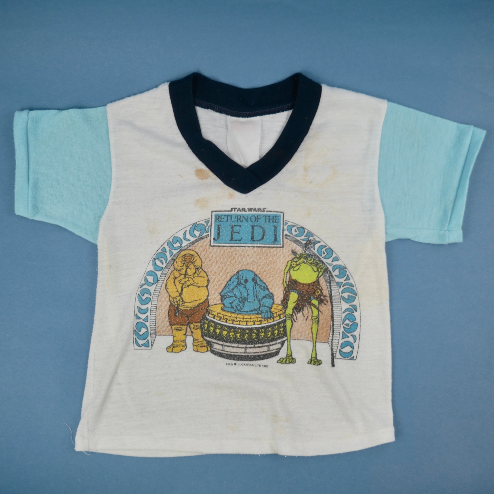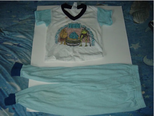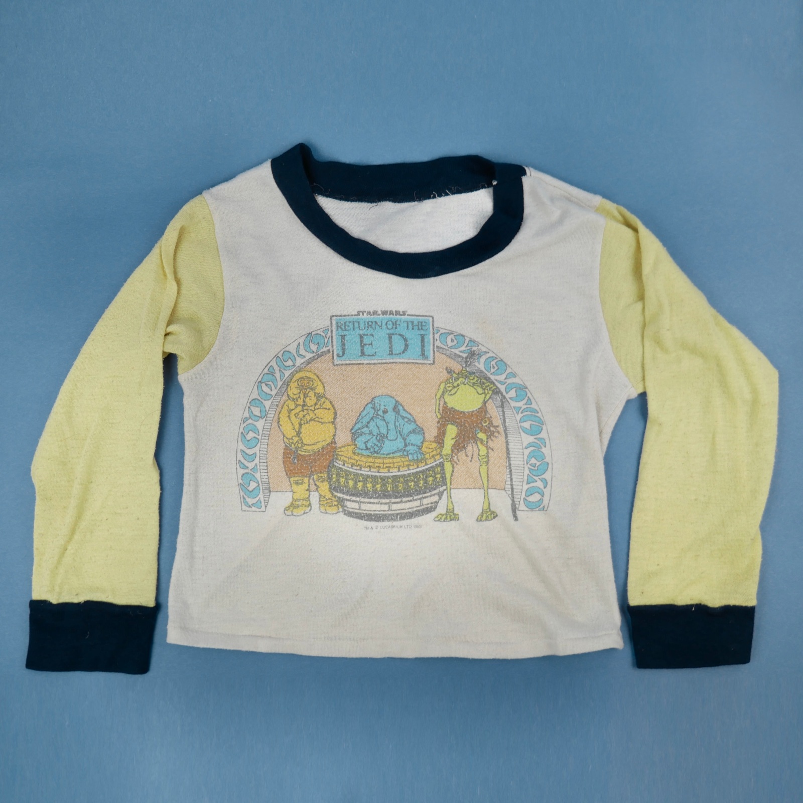 If anything these were even harder to track down than the Jabba ones. While I have unused in-package examples of the Jabba pajamas, all I have for the Rebo Band are these very well used examples. The first time I saw a set of these pajamas come up on eBay, it was back in 2011 or 2012 and I missed the buy-it-now by mere seconds. I saved the picture from the auction for reference, (see below). I was finally able to pick up a set of these many years later, and it wasn’t until I compared the stains and creased tag on mine with the original auction photo that I realized it was the same exact set that I had missed out on years before! (I also have the pictured pajama bottoms, but they don’t have any Star Wars branding or anything on them).