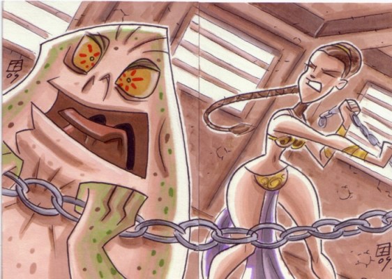 This is a set of two original sketch cards by Otis Frampton done in markers and colored pencils. Poor Jabba. 😦 😉