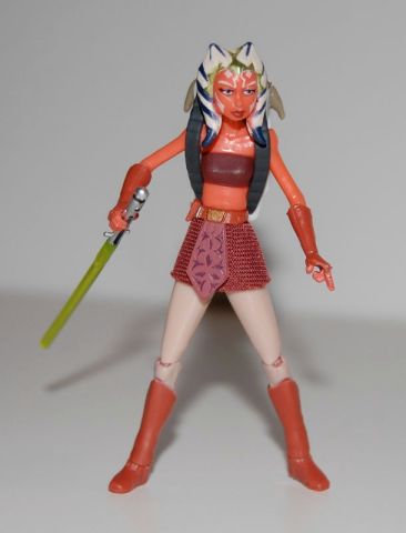 Anyway, Ahsoka is a pretty good representation of the CGI model, and the paint is well done. The only real problem is that the backpack with Rotta in it tends to make the figure a tad back-heavy.