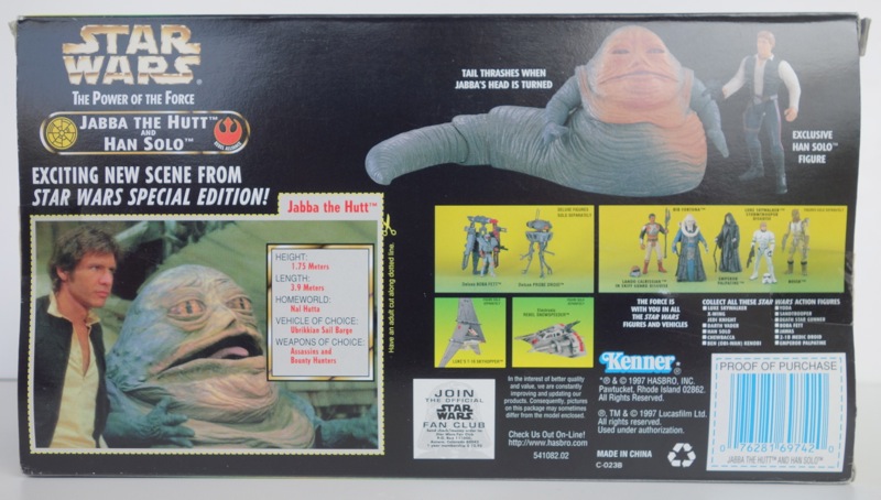 It has an action feature (turn torso to make tail move) but it makes it impossible to position his tail horizontally from his body, which is how we usually picture Jabba (and makes it very difficult to use the figure with the cardboard throne room playset that they released around the same time).