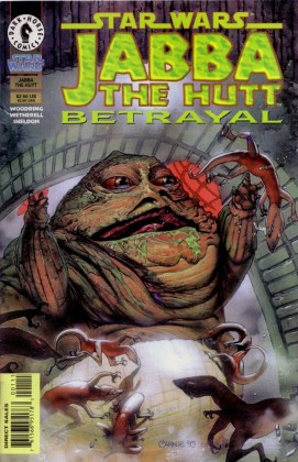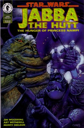 Dark Horse Comics did four one-off comic books featuring Jabba as the main character in 1995 and early 1996. The titles are “The Hunger of Princess Nampi,” “The Gaar Suppoon Hit,” “The Dynasty Trap” and “Betrayal.” The stories are only loosely connected to each other, and all show Jabba’s life as a crime lord before the events of the Star Wars movies (or at least before Return of the Jedi). None of the Star Wars characters make an appearance.