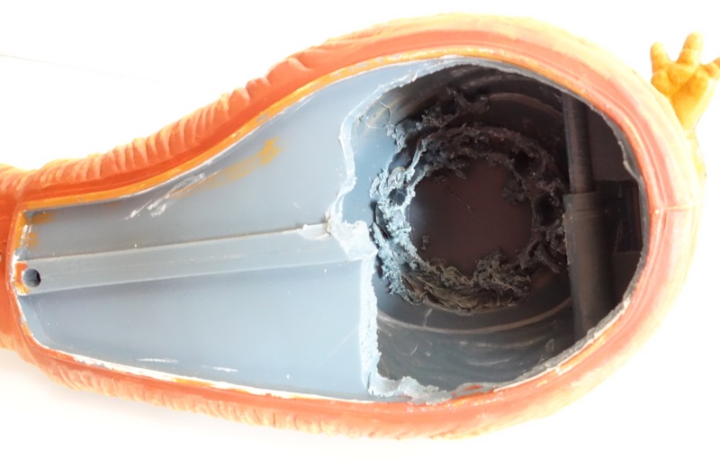 As I said before, I’m not a fan of the POTF2 Jabba for a variety of reasons. When I won one very cheaply on ebay, I decided to repaint it. I had to dremel out the insides to make it possible for him to face to the side like most Jabbas. I didn’t know what the mechanism was that was preventing him from turning to the side, so I basically just had to stab around with the dremel until I figured it out. They made this figure out of very thick and hard plastic, which made things difficult.