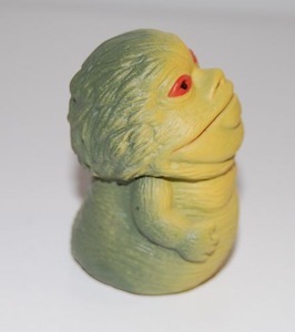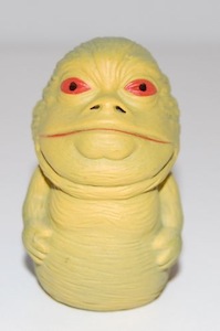In any case, it is part of a series of super-deformed figures of figures that can be used as pencil toppers and are about 2″ tall. It’s made of a hard material (the Wish Book says they’re painted ceramic, but I think plastic is more likely). They feature characters from Phantom Menace. This Jabba is a little odd since the way they sculpted him makes it look like he’s got hair or feathers.