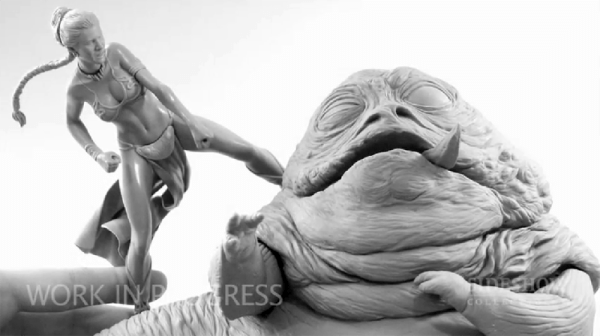 Sideshow just gave a sneak peak of their upcoming diorama depicting the scene where Leia chokes Jabba to death. It’s still a work in progress, but from what we can see so far it should be a very cool piece, and the first statue to be based on this scene as far as I know.