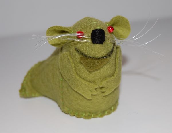 Anna Greaves is a British woman living in the Netherlands who apparently makes little felt mice on a full-time basis. Her Etsy store, called “The House of Mouse” features a lot of her designs, although she’s removed all of the ones she doesn’t have on hand because she’s going to be having a baby soon and will be taking time off. Her Flickr photostream has just about every design she’s made. For the moment, she will still make other designs if you contact her, so I asked her to make this Jabba mouse for me before taking off. She’s got lots of Star Wars-themed mice (and was even featured in Steve Sansweet’s new book, “1,000 Collectibles: Memorabilia and Stories from a Galaxy Far, Far Away”. I love the certificate of authenticity with the real wax seal. šŸ™‚
