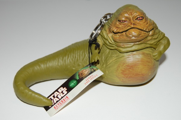 This is part of a line of figural Star Wars keychains sold in Australia. I doubt if many people actually used it as a keychain, since it’s around 4 inches long. At least around the head, it bears more than a passing resemblance to the Pepsi Jabba bottle toppers (both version 1 and version 2), but I’m not sure if there was actually any re-use of the sculpt or not. This item was a donation from Jibbajabba, a fellow Jabba collector from down under. Thanks!