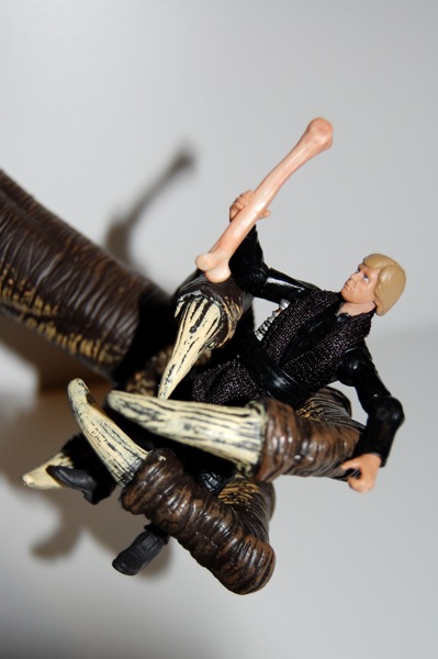 It’s quite a bit bigger than the original rancor (see this comparison shot) and it’s completely painted from head to toe. And the paint is pretty well done, which is something that you can’t say about a lot of factory painted toys. It’s a little rough if you look closely, but the overall effect is quite nice.