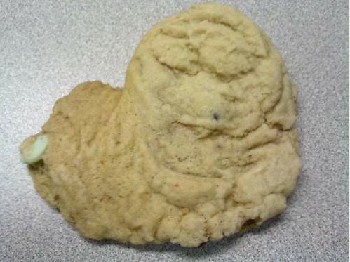 This is a homemade cookie, mint chip, that when it came out of the oven it looks exactly like Jabba the Hutt.