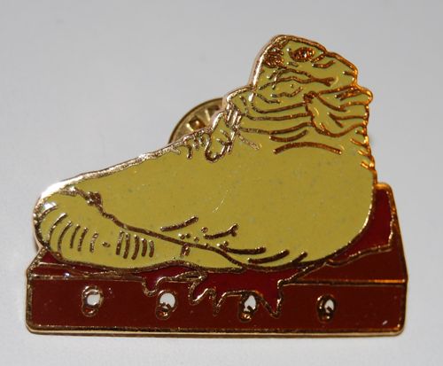 I don’t think this qualifies as “vintage” since it came out in 1993, but it does have a vintage feel somehow. Maybe it’s the fact that it re-uses the same Jabba illustration that so many of the vintage products used in 1983. It’s made of metal and is actually quite well done. It has one of those pinch clasps on the back. It’s about an inch wide. They also made a Slave Leia version and (apparently) a pin of Jabba’s tattoo, but I haven’t even been able to find a picture of that one.