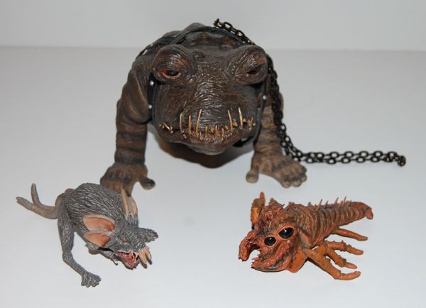The second creature pack for Sideshow’s 1/6 scale Jabba the Hutt setup includes Bubo (the largest creature), a womp rat, and a rock wart (apparently some sort of sand lobster). The exclusive edition (which I don’t have) included an extra “scratching” womp rat, which is nicer than the bonus for the other creature pack, but not exactly a must-have. The paint on Bubo isn’t as good as I would have hoped and in general I don’t find this pack to be as nice as the other one, especially since it’s more expensive. I would only get this if you are a die-hard Jabba fan and have a large Jabba display area — the throne can get mighty crowded if you try to display all of the creatures at once.