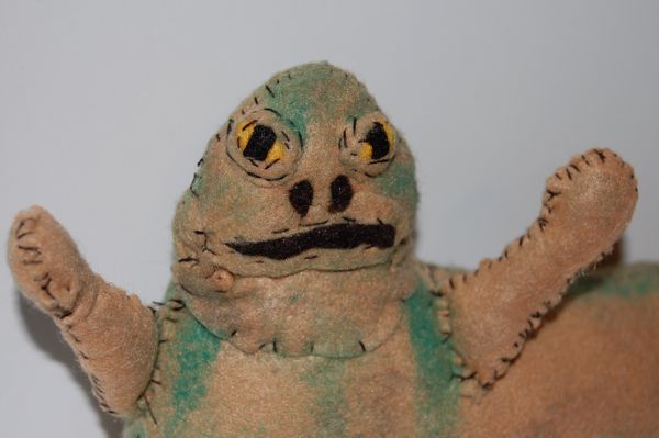 He’s about 10 inches long by 6 inches high. I think if you set out to make a Jabba voodoo doll, it would look a lot like this. 🙂