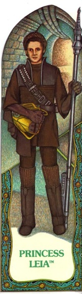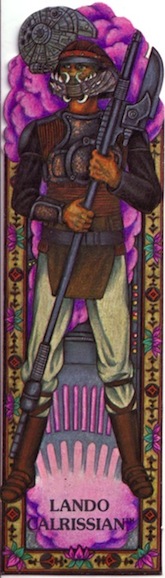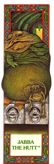 Produced in 1983, these were part of a set of 16 bookmarks featuring various characters from Return of the Jedi. I’m not sure if they were all sold as a set, but I imagine so. Most of them are quite well done and very colorful as well. The Jabba-related ones are Jabba, Leia as Boushh, and Skiff Guard Lando. I have all but two of these (missing Han and Boba Fett) and I really like the art style overall, although Leia looks a little off.