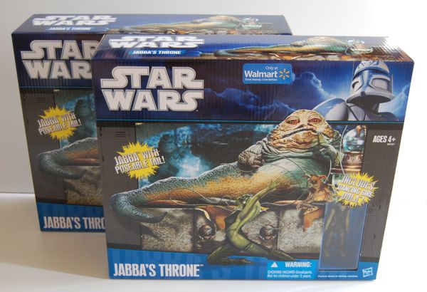 This is a Walmart-exclusive set, and the stores are only just now starting to get them in. The “street date” for this set is August 6th, so even if stores do get them in, it’s likely that they won’t be putting them out until then or later. I got the UPC number for the set (65356950285) from some helpful people in this thread on Jedidefender.com and did some asking around. I found that one of my local stores was scheduled to get a delivery last night. I didn’t know if that would mean it would be going out on the shelves right away or if they would hold it until the street date, but I figured it was worth going in this morning to check. There was still no new Star Wars stuff on the shelves when I got there, but I asked a helpful woman nearby if she could check the UPC. She went into the back and got the two boxes that the store received. (One is for me and one is for the Japanese Jabba fan who runs Jabba the Hutt’s Palace.) I certainly hope stores will be getting more than just two of these in.