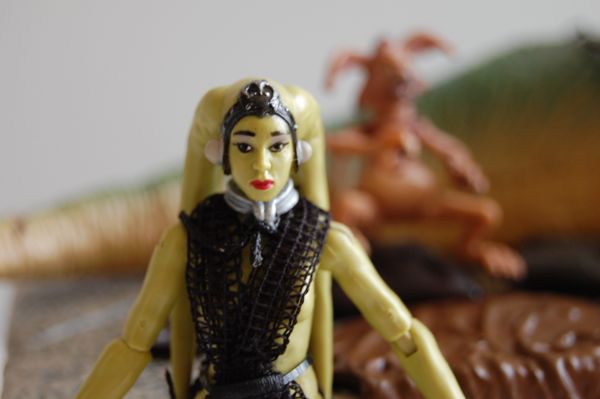 Oola is also very well done. She has a fully articulated body and an outfit made of real cloth that actually looks good on her (and yes, she’s naked under there ;)). She’s a big upgrade from the previous mail-away version. Many collectors are interested in getting extras of this figure to use as generic females for custom figures.