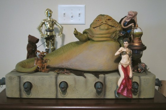 Seeing Leia in her metal bikini certainly struck a chord for a large number of young men watching Return of the Jedi, and I know that there are also quite a few women who see her eventual triumph against Jabba as empowering. In short, she appeals to a lot of people for different reasons, which is probably why there have been so many collectibles based on her in this outfit. There’s enough stuff out there to start a focus collection just for her. I’m not quite prepared to do that — I mostly buy Leia items as accessories for Jabba. And in fact, that’s how I ended up with this piece. I originally bought it to go with my 1/6 scale Sideshow Jabba.
