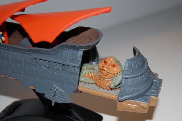 It comes with drink-serving R2-D2, Yak Face (aka Saelt-Marae), and Jabba. I think the Jabba is a unique sculpt, although it’s pretty similar to some of the other Micro Machines versions. The rear of the barge slides out to reveal his throne area, but you can remove him if you want.