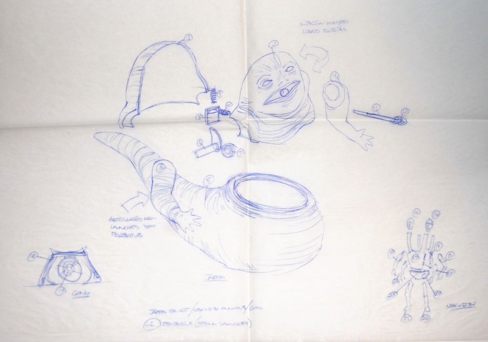 Design Documents and Concept Drawings for Hasbro Spitting Jabba and Two-Headed Announcer