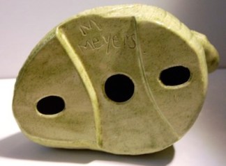 I’m not positive if these were pre-made pieces that people would just glaze and otherwise decorate, or if there were molds that allowed people to make them from scratch. I’m leaning toward the former. Mine has a name carved in the bottom (“M. Meyers”).
