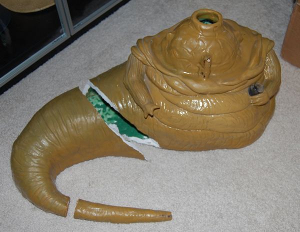 The person I got this from said it was a one-of-a-kind piece, and while I can’t be sure of that, I think it probably is. I don’t know who made it, but inside the lid there is the date 10/16/98 and what appear to be the initials IR. I think the sculpt is excellent. The face in particular really captures Jabba’s asymmetrical features.