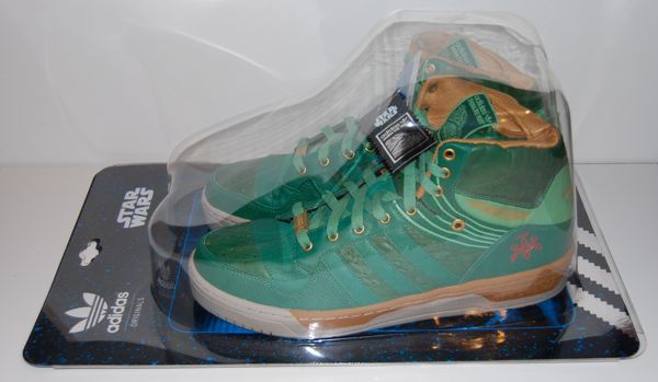 Some of the entries in the Adidas Star Wars line have been better than others. Much of the clothing is forgettable, and some of the shoes look ridiculous. But some of them have really hit a sweet spot between Star Wars geekery and coolness. Maybe I’m biased, but I think these fit into that category quite nicely. For one thing, the design manages to be attractive on its own, without being overpowered by the character it represents. I don’t think wearing these would immediately brand you as a Star Wars geek, and in fact I could see some casual fans wanting to wear them, partially because Jabba has a sort of “gangster” cred that other Star Wars characters don’t. The colors they chose go well together as well, while still being appropriate for Jabba.
