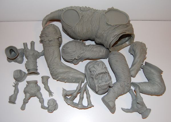 If you’ve been reading my blog for a while, you may recall me posting about the AMT/ERTL Rancor model kit last March. It’s a vinyl model kit that came out in 1998. When you open the box, it looks something like this: