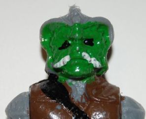 One of the most interesting ones is the Gamorrean Guard, because it’s one of the few figures that isn’t based directly on a Kenner figure. For some reason, they actually made an original sculpt for this. My feeling is probably that the Kenner Gamorrean was simply too large. It’s infamous for not fitting in any of the vintage carrying cases, and my hunch is that it might have been too big for their molds. In any case, it’s interesting to get a unique sculpt like this, even if he does have a silver face for some reason…