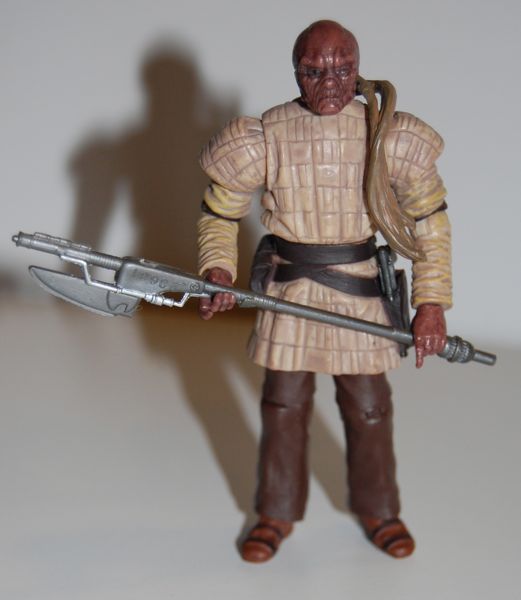 It’s well done — certainly the best Weequay figure we’ve gotten — but it doesn’t impress me quite as much as some Hasbro’s other recent releases, like the Giran or Gamorrean Guard figures. Those could pass for much larger scale figures, or even statues, but this one seems to be more obviously an action figure. His clothes in particular seem kind of plasticky looking, and the joints aren’t as well hidden.