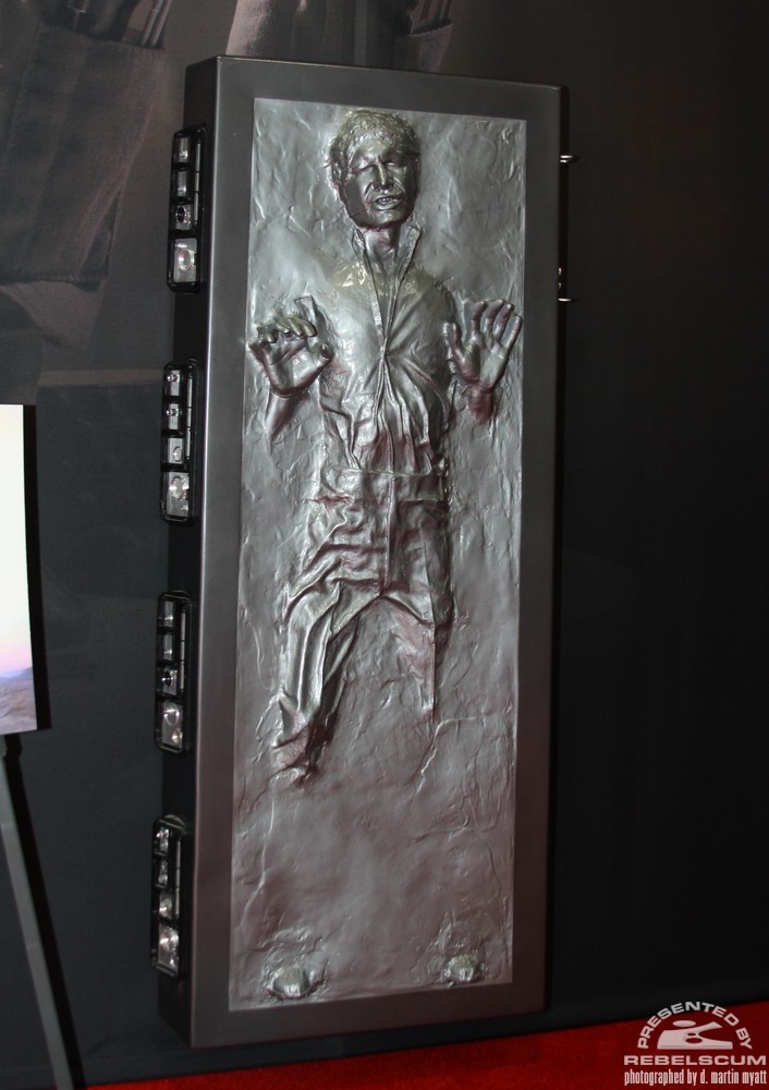 There have been rumbles about this for a long time, but Sideshow finally previewed its life-sized Han in Carbonite figure at SDCC a few days ago. Below are some shots taken from Rebelscum’s coverage of SDCC. Click for a larger view.