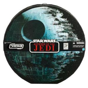 One of Hasbro’s exclusives for San Diego Comic Con 2011 was a giant set of 14 action figures in a large round package shaped like the Death Star (see below). All of the cards in the set use “Revenge of the Jedi,” which was the original title of Return of the Jedi before it was changed at the last minute. (The idea was that Jedi wouldn’t stoop to getting revenge, and I think that was probably a good change to make.)