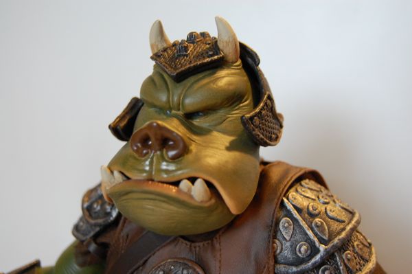 Sideshow has since released another Gamorrean called “Gartogg,” which is basically identical to this one except that it has a slightly different facial sculpt and one broken horn (as well as one more axe than the two that come with this figure). I won’t be buying it at full price, but I’m impressed enough with this one to pick up Gartogg if I can get a good deal on him. After all, Jabba’s palace needs more than one Gamorrean to guard it. 😉