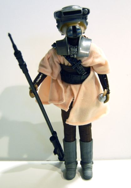 Take off the helmet and you get a surprisingly attractive (if very doll-like) head with rooted hair. Any resemblance to Carrie Fisher is purely coincidental. 🙂