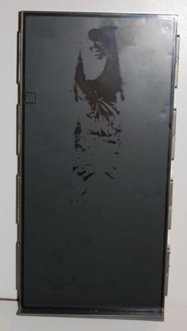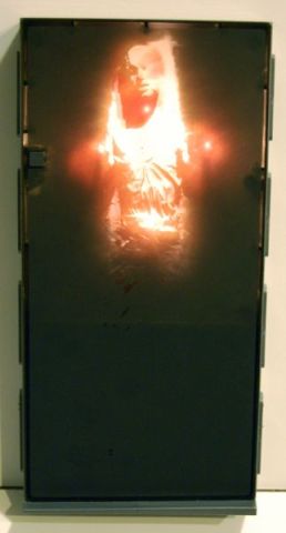 This is actually the second 12″ Han in Carbonite that Hasbro released. The first version was sold in a set with a Han Solo figure and was completely sculpted. It’s actually still a decent alternative if you want a cheap Han in Carbonite for your Sideshow figures, if perhaps a bit oversized. This one is not as impressive at first glance, since it’s completely flat on the surface, with just a hint of Han painted on the surface. But press the small button on the upper left and you get a “melting” effect that is actually pretty cool. It fades in realistically and since you can see into the block it looks kind of like Han is actually starting to come out from inside the block.