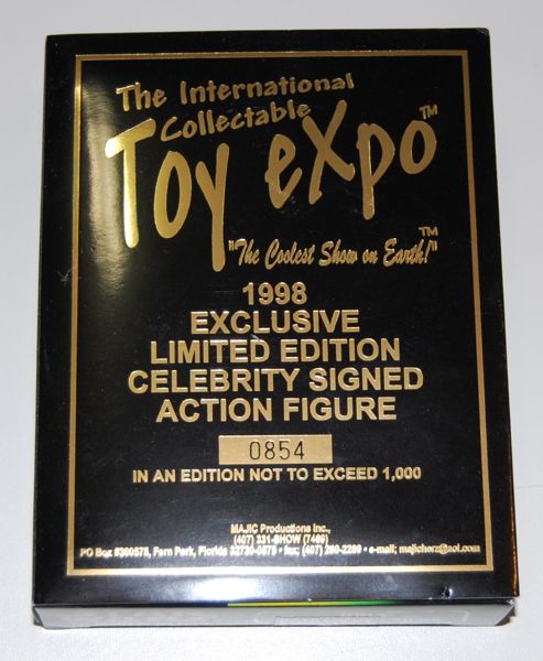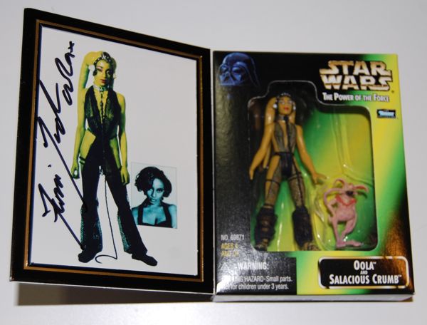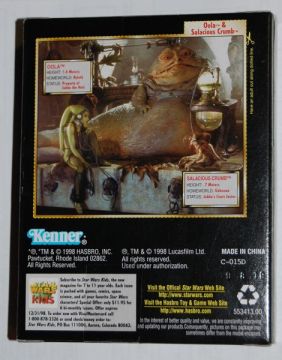 This is a figure that was exclusive to the 1998 Toy Expo in Philadelphia. Well, the figure itself is just the normal Power of the Force Oola and Salacious Crumb from Hasbro, but a cover has been attached to it so that it can be opened like a book. Opening the cover reveals an autographed photo of Femi Taylor (who played Oola both in the original film and the Special Edition that came out in 1997). I believe the figure was originally only available as a mailaway offer, so they must have worked something out with Kenner to get 1,000 of them for this promotion.