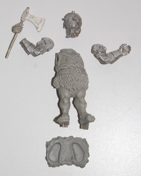 When you open it up, though, you’ll see that the Gamorrean is only partially made of metal. His body and stand are made of gray resin, while his head, two arms, and axe are made of metal. I said this about Jabba as well, but when you’re paying this much for a kit, it just seems chintzy to only do part of it in metal. I don’t know if cost reduction was the only reason for this or if there’s some technical advantage to using resin, but I can’t say that I like it.