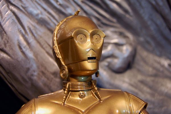 The biggest flaw with this statue (aside from the lack of a true metallic finish) is his pose. He’s kind of bending backwards in an awkward way, in what appears to be surprise. It’s true that there are only so many poses you can use for C-3PO, so I guess I have to give them some credit for trying something less traditional, but it doesn’t quite work for me.