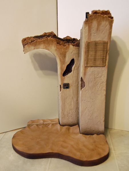 I think there were a lot of confused reactions when Sideshow announced this piece alongside their “Gartogg the Gamorrean Guard” figure in late 2010. I know I was a bit underwhelmed, which explains why it took me so long to get one. There’s so much potential for “environment” pieces in Jabba’s palace. They could do the steps on the sides of Jabba’s throne, the barbecue behind it, or even the archway going over the throne if you want to get ambitious. So at first glance it’s hard to understand why they went with this broken archway. I don’t think there’s anything like this in the palace. If someone showed me a picture of it, I wouldn’t have known it was supposed to be from Jabba’s palace, or even from Star Wars overall, although I guess it does have a bit of a “Tatooine” feel to it.