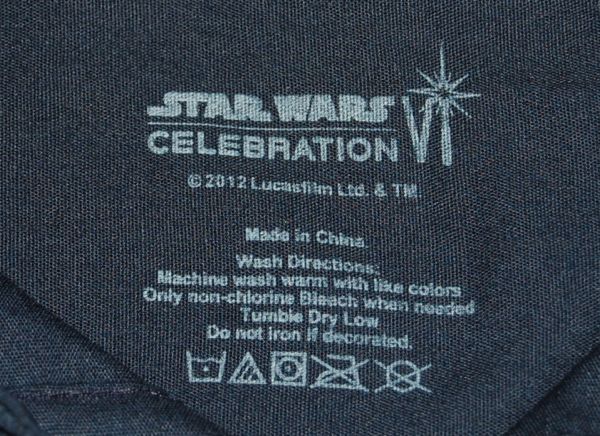 I mentioned in some of my earlier posts about Celebration VI exclusives that I had trouble finding info about the products before the convention, and that was never more true than with this shirt. I put all of my Googling skills to the test and all I could find was a text description of it. Since I wasn’t going to be at the convention, I ended up having to buy it sight unseen. I was a little wary about this, considering the shirt cost $60. I don’t really think it’s worth that, but it is pretty funny and there can’t be too many people who have them. I doubt I would wear it except maybe at a convention or gathering of Star Wars fans. Maybe next celebration, if I can make it…