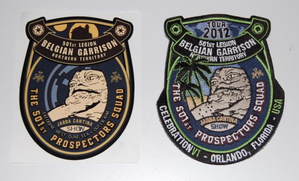 This sticker and patch were given out at Celebration VI by the Belgian Garrison of the 501st. They appear to have been made by the “prospectors squad” but clicking on the link there just leads to you to a generic page at the moment. They’re both pretty cool designs with a lot of Jabba-specific imagery, although I’m not totally sure I understand how Jabba fits in with imperial troopers.