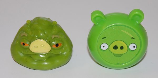 It just so happens that my son has some of the other Angry Birds toy sets, which I now realize were put out by Mattel instead of Hasbro. They are VERY similar in concept, but Mattel’s birds are bigger and hollow, so they’re lighter weight. It seems that the Hasbro birds are easier to shoot with, since they have more weight and fit onto a holder on the launcher. The Mattel games include a variety of cards and birds of different sizes, and is generally more complex (in a good way). As a game, the Hasbro version seems overly simple, but I guess you will be able to combine sets if you like.