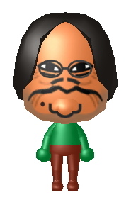 For Jabba, you need to get a creative. (Full disclosure: when making this I took some hints from various other versions of Jabba Miis I found on Google.) Instead of just using the stock eyes, noses and mouths, you need to substitute some parts for others. Jabba’s chin is actually a large nose, moved down to the bottom of his face. His nose is actually a set of eyebrows, and the mouth was made bigger with a mustache. I used some glasses to give the impression that he has big round eyes. The hairstyle helps create the illusion that he has a triangular head like Jabba. And finally, I added a mole around the location where Jabba actually has a mole or other growth.