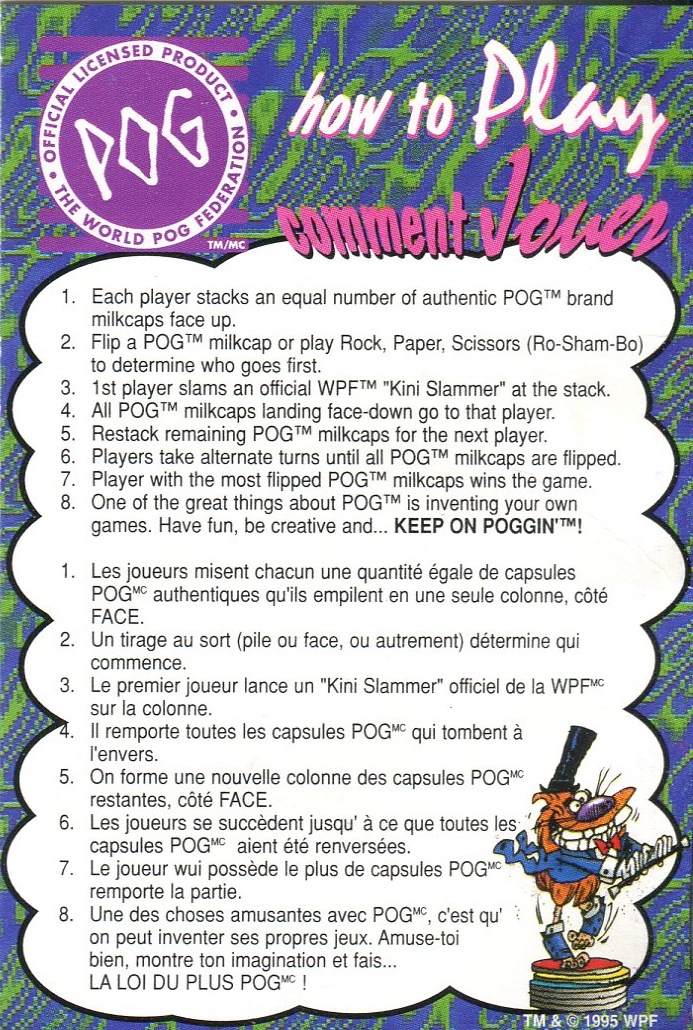 POGs were a short-lived fad in 1990s. Each player would have a pile of cardboard disks called POGs that they would hit with a heavier disk called a slammer, with the goal of turning as many of the POGs face-up as possible. I never had any myself as I was too old when they became popular, but I know that kids at the time went crazy for them, collecting and trading them to the point that many schools banned them because they were becoming a distraction. But like most fads it burned brightly for a while and then faded away.