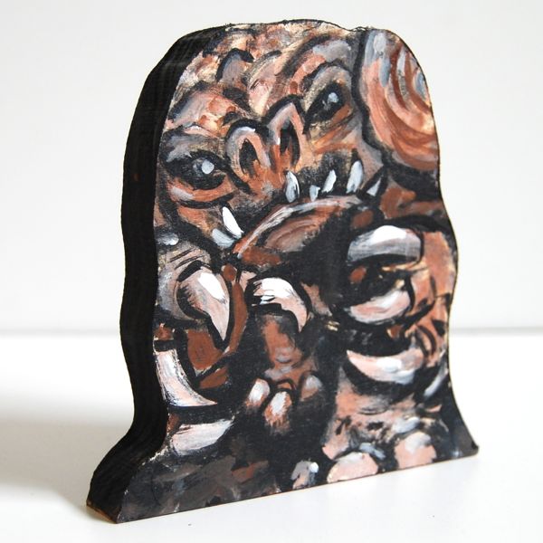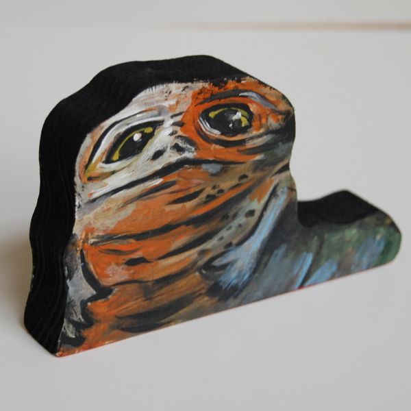 I won Jabba and Han in Carbonite and since the seller turned out to be John himself, I inquired about making some others, which he kindly agreed to. They’re made out of 3/4″ thick wood that’s been cut into simple shapes and then painted appropriately.