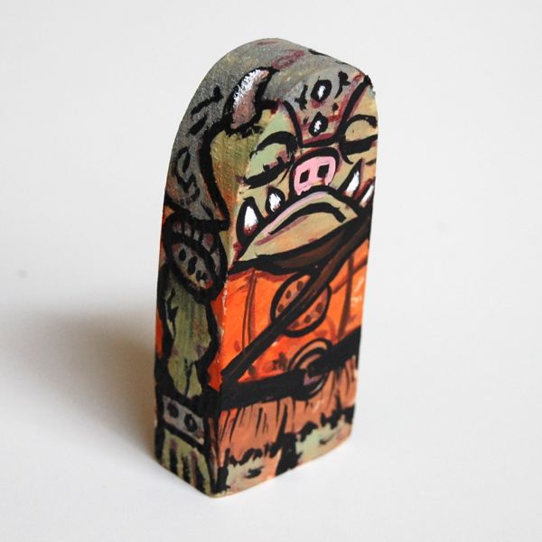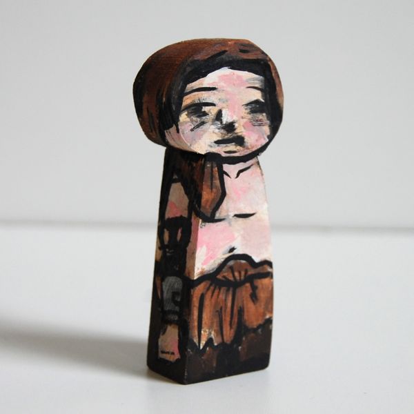 A couple of years ago, I got a sketch card by John Soukup from the Topps Galaxy Series 5 (here’s his DeviantArt page). I like it a lot and have it framed it my office. So I was quite interested when I saw some painted wooden Star Wars figures that he made being sold on eBay. I had never seen them before, but apparently he’s made quite a number of these, and for properties other than Star Wars, as well.