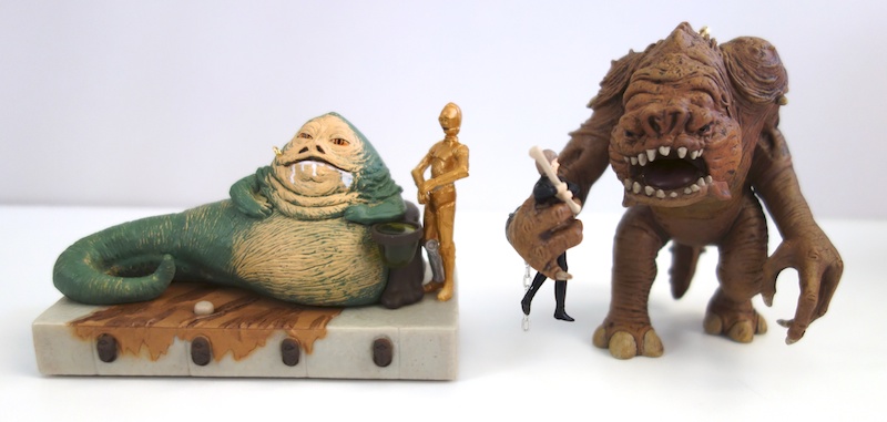 I was hoping that this ornament might actually be in scale with the Jabba the Hutt ornament I posted about earlier, but that didn’t work out. Luke ends up being a head or two shorter than C-3PO, making the rancor smaller than he should be relative to Jabba.