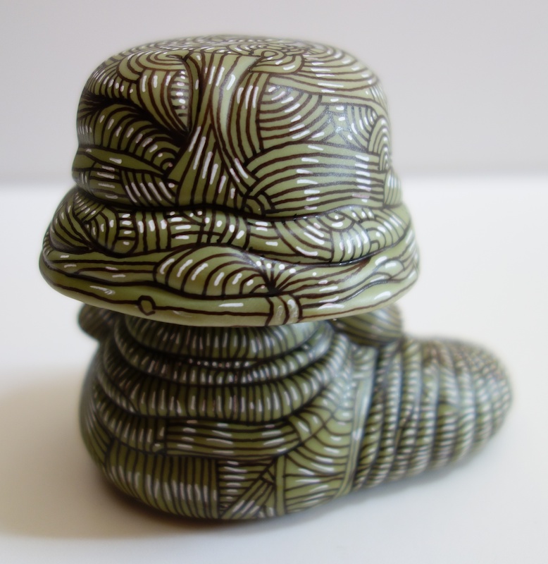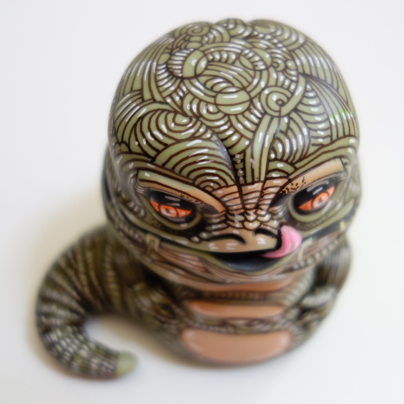 This is a Funko Pop Jabba the Hutt bobble-head that the artist Howie Green has modified. He apparently used a few different colors of pens as well as some acrylic paint to get this effect.