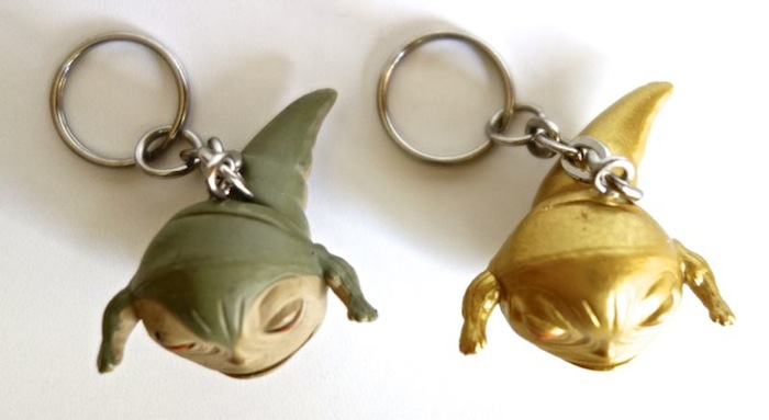 My hunch is that the gold version was used as a sort of “chase” keychain with an alternate design. I think these kinds of keychains are really intended as action figures, but have a keychain added to make it so they don’t infringe on the company with the license for unarticulated figures like these. The larger figures in particular are very impractical as keychains, but make reasonably good action figures or models.