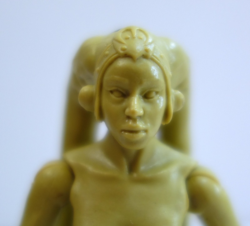 When you compare this prototype with the finished figure, the finished figure looks a lot more toy-like somehow. The mesh netting she’s wearing looks too big and bulky, and the paint on the face seems heavy handed. There’s not really a lot of paint even on the finished figure — it’s basically just her face, headgear and sandals — but it does make quite a difference in the figure’s appearance.