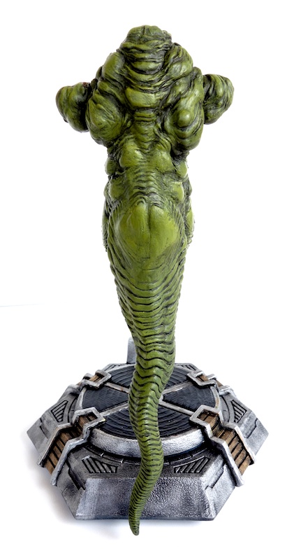 This is a resin model kit sculpted by Paul Komoda in conjunction with Artist Proof Studio. The sample paint-up that they have showed for the piece uses an interesting bluish color scheme, apparently based on a painting by Paul. It’s attractive, but the combination of the coloring and the unusual “zero-g” concept makes it difficult to even recognize it as being Jabba, so I went with a more traditional orange and green color scheme. I also opted to have him standing more upright rather than floating forward.