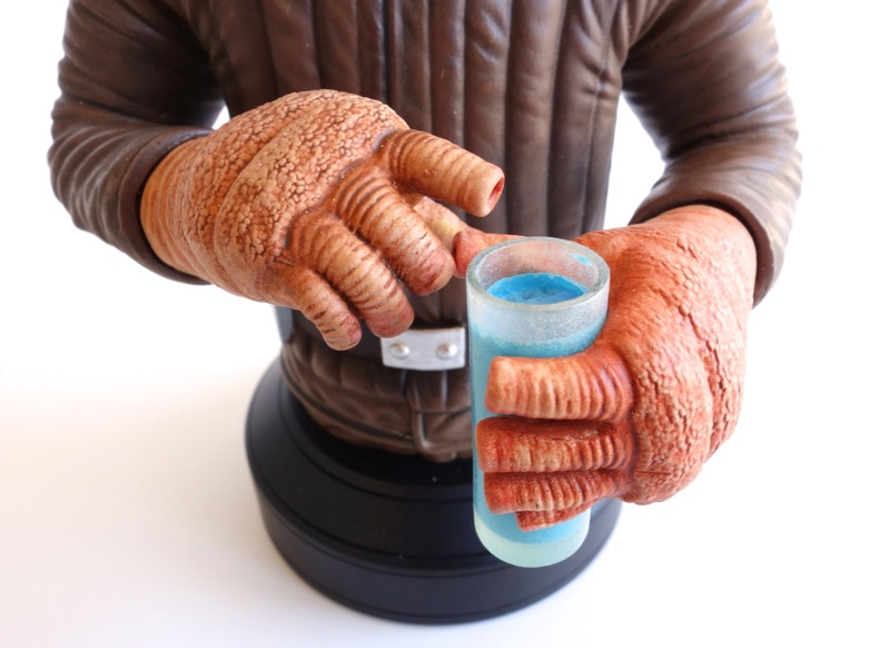 I think the bust came out quite well. It’s a “deluxe” mini-bust with a switch-out arm. You can either have him empty-handed, enjoying his glass of blue milk, or have him holding a blaster. The blaster looks a little out of place in my opinion, so I think I’m going to go with the empty hand.
