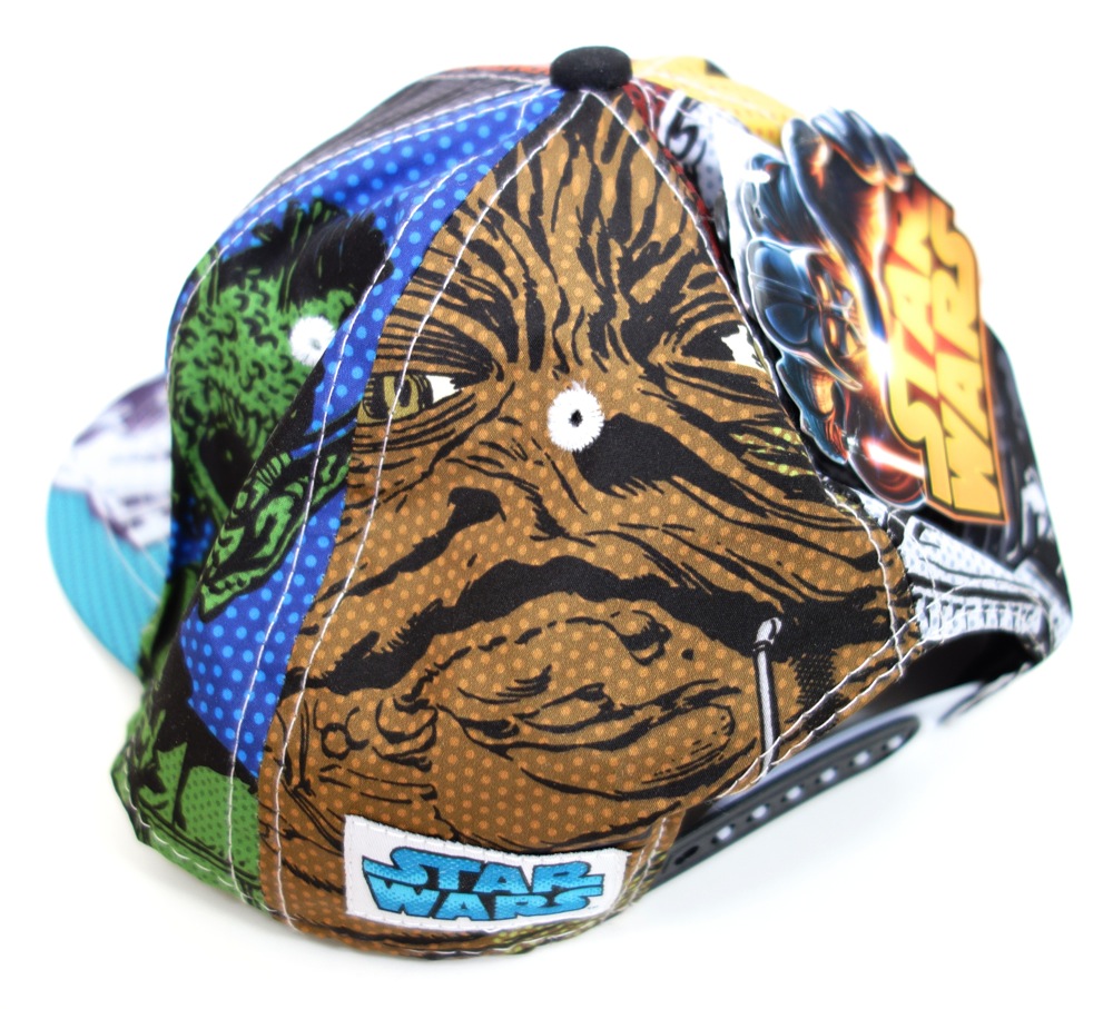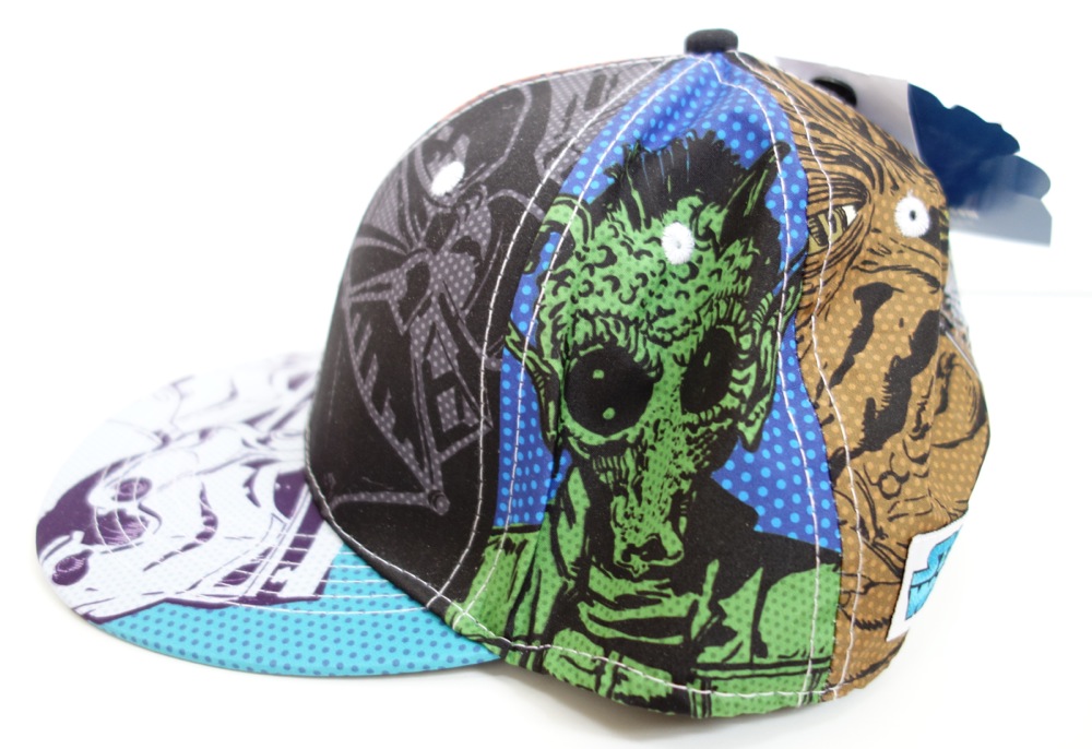 I never wear baseball caps, but somehow I keep adding them to my collection as I discover more with Jabba on them. This one was apparently sold at Spencer’s Gifts and features a variety of Star Wars villains in a sort of comic book-inspired pop art style.